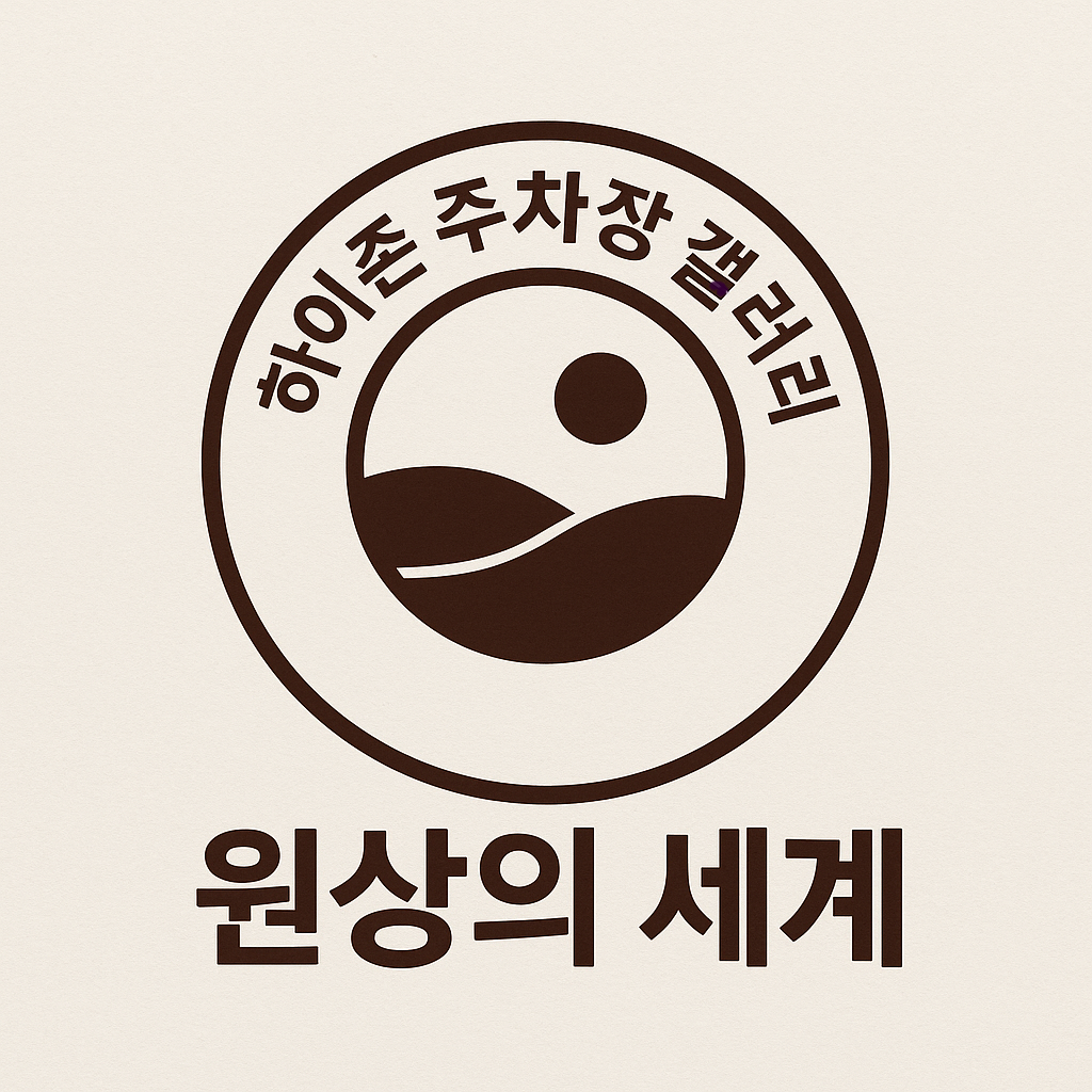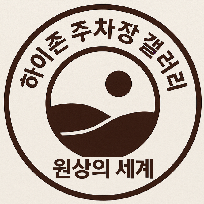 **“일상의 공간(주차장)이 예술의 세계로 확장되는 지점”**을 시각적으로 표현한 상징형 로고입니다.