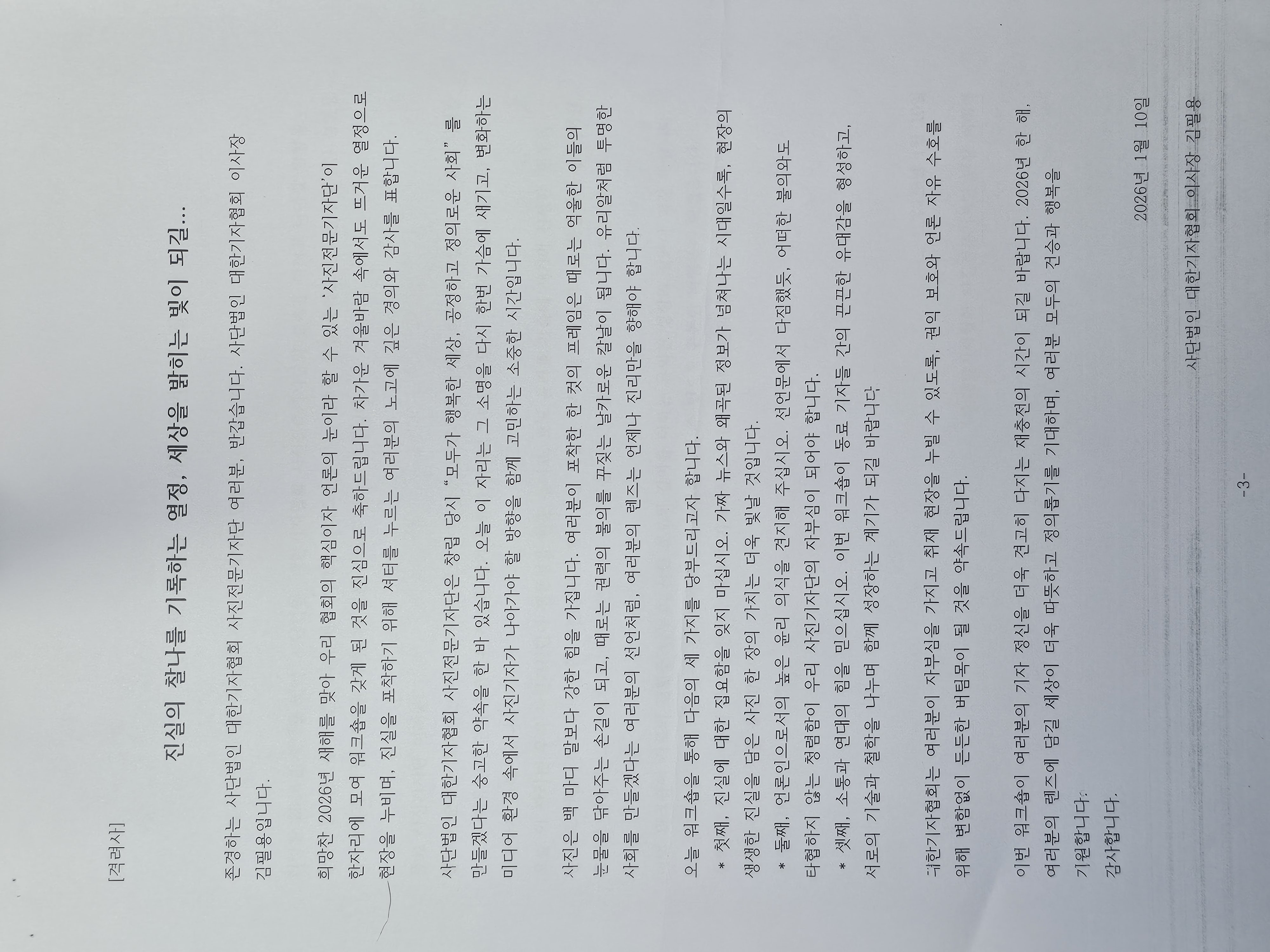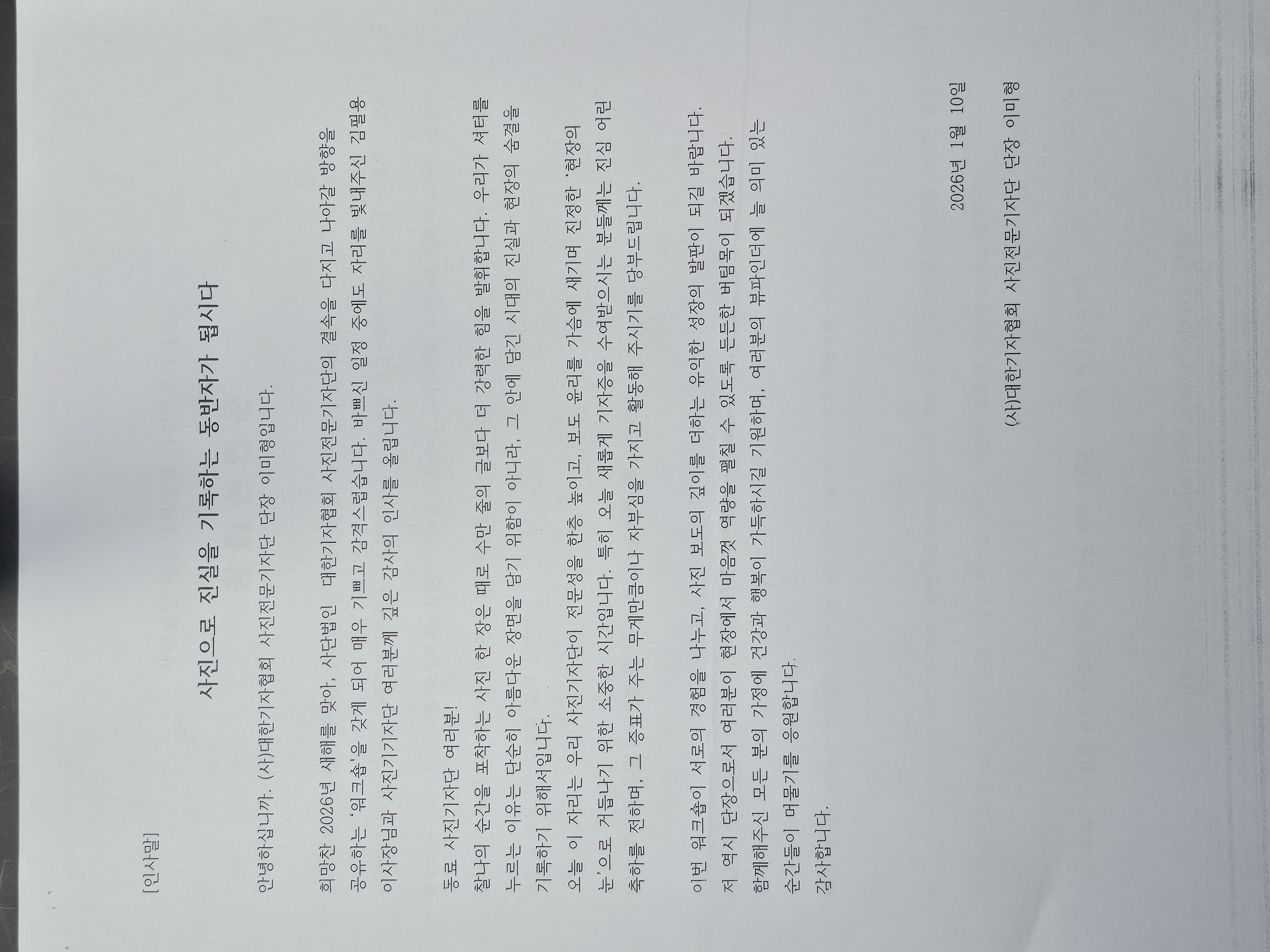 사단법인 대한기자협회 사진전문기자단 창립 선언문을 소개합니다.